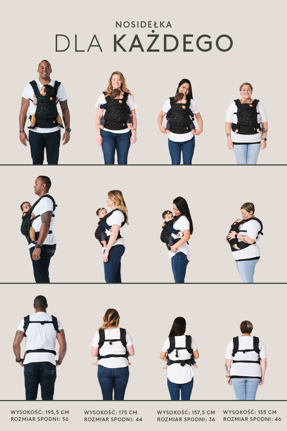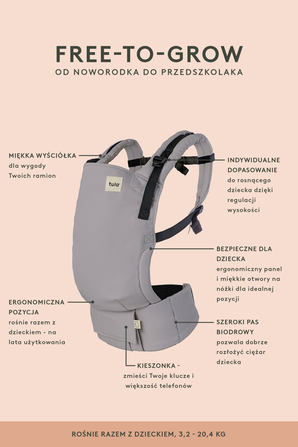 Nosidełko dla niemowląt Free-to-Grow marki Baby Tula ma panel, który można regulować, zapewniając dziecku ergonomiczne siedzisko w miarę jego rozwoju.